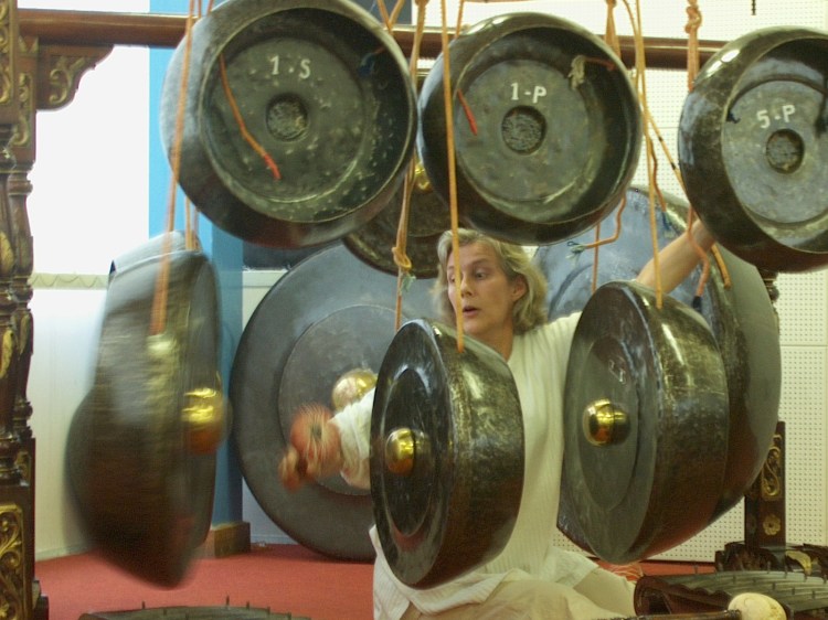 Gamelan is an ensemble of metal percussion instruments from Indonesia. The gongs, metallophones and chimes which comprise my gamelan were hand-crafted in central Java using bronze, brass and iron, and set on hand-carved wooden frames. They are beautiful to look at, and their sound is immediately captivating.